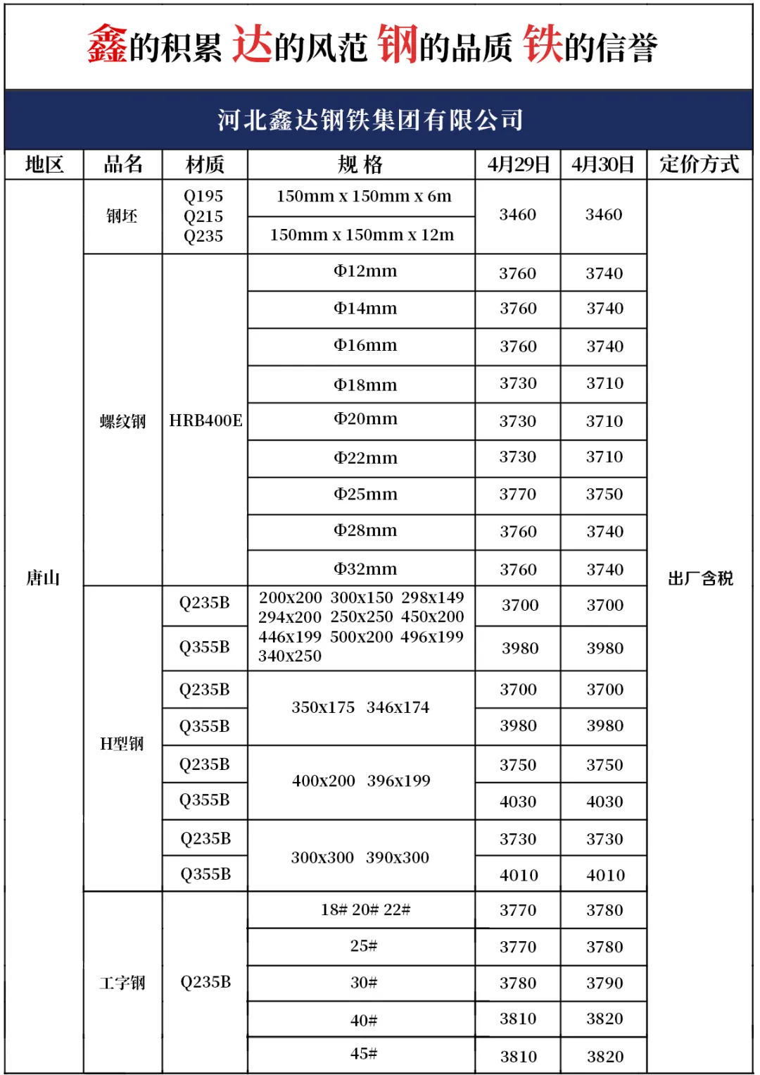 4月30日产品报价